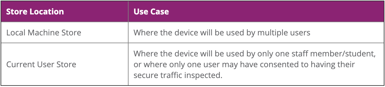 If you are installing certificates manually on all of your Windows devices, these steps will need to be performed on each new device that is to be subject to SWI Filtering.